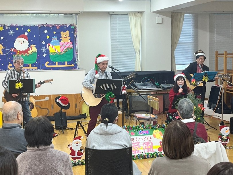懐かしい音楽を聴くと、体の中でさまざまなポジティブな化学反応が起こり、メンタルのアンチエイジングツールとして、とても有効なのだそうです。懐かしい音楽に触れ、脳も心もすっきりとする時間となりました。自然と体がリズムに乗り、手拍子がひろがり、愛風さんの音楽を皆で楽しみました。